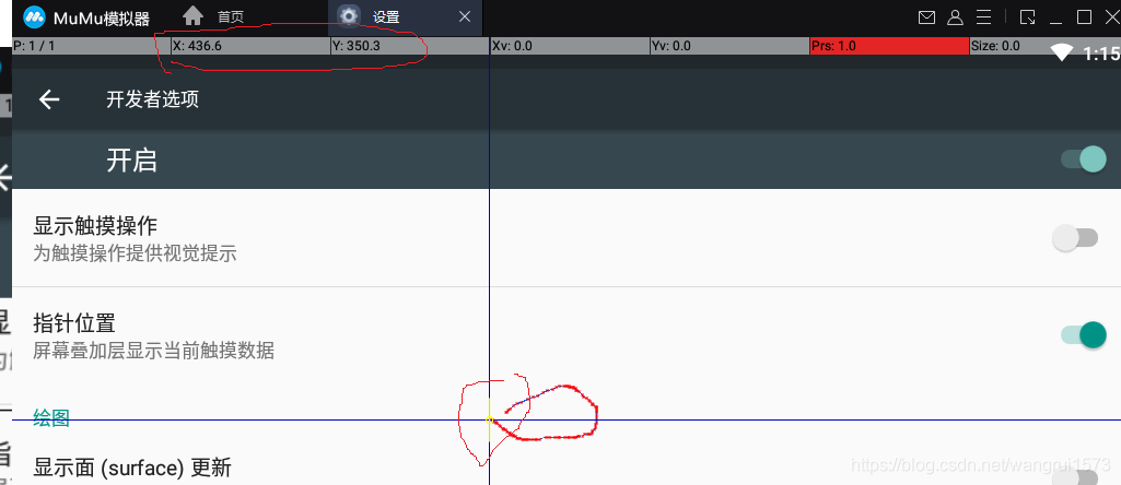 在模拟器打开 APP,输入下列命令调整点击位置: