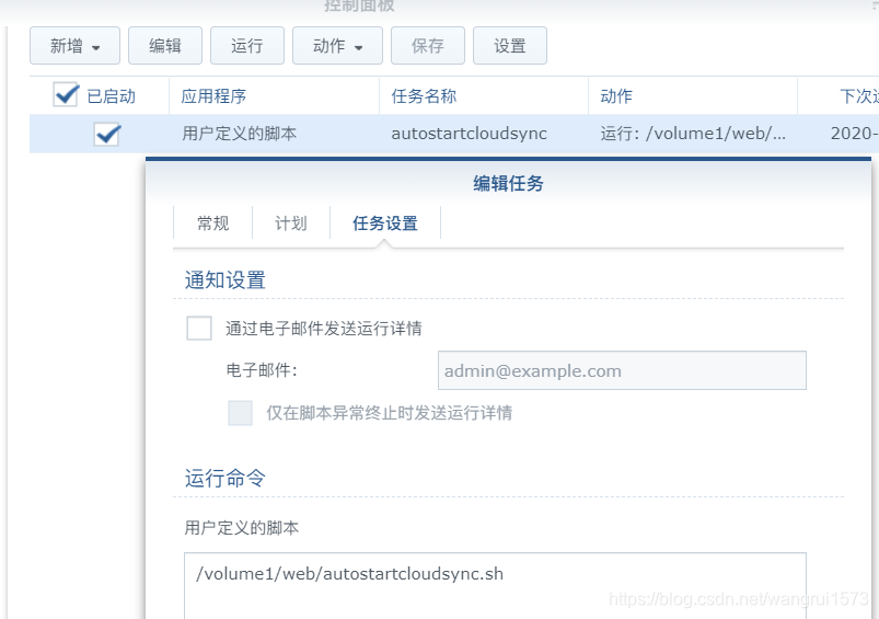 - 保存到 autostartcloudsync.sh 在群晖中设置任务计划,每 5 分钟执行一次